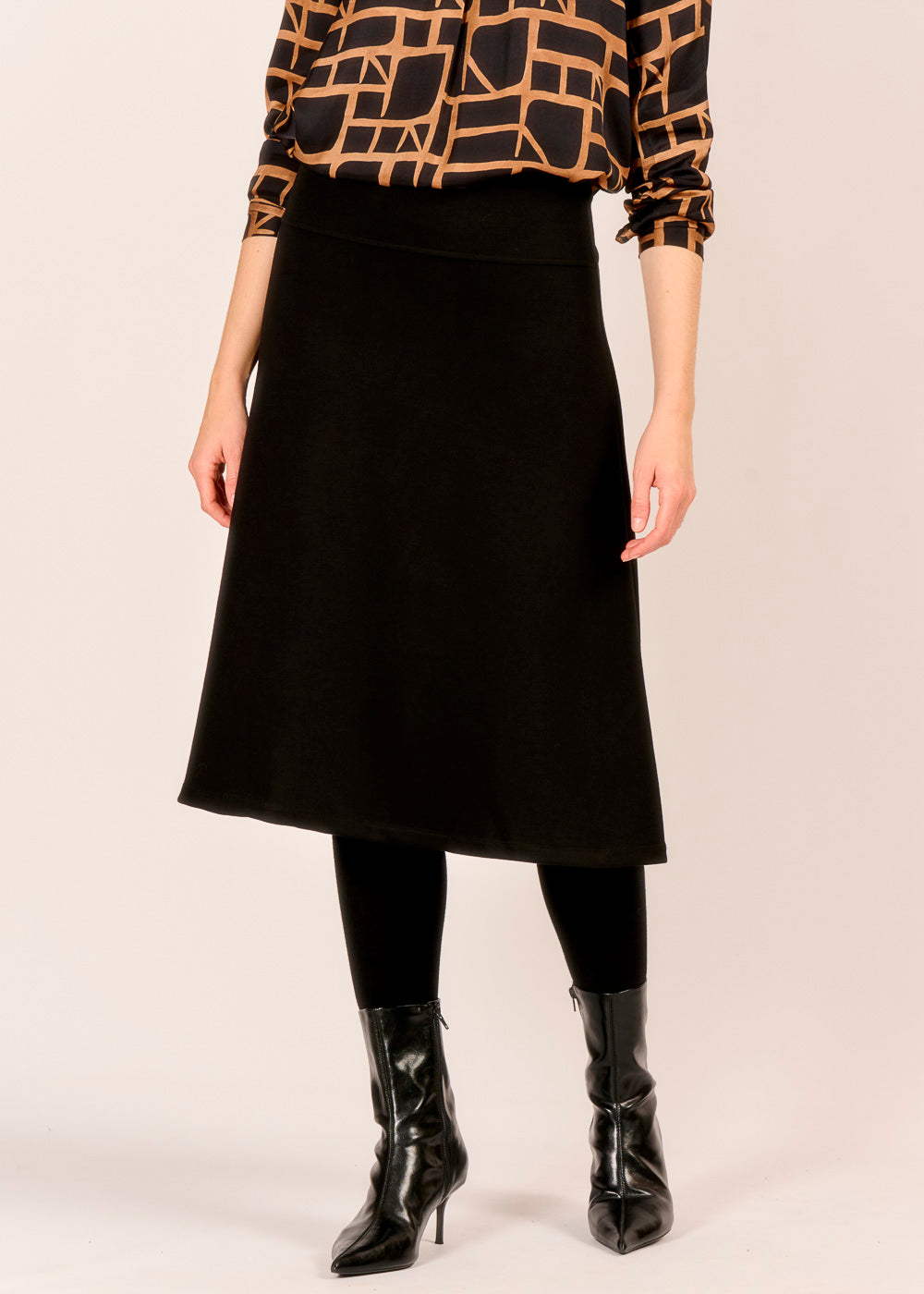 Bequem und absolut festlich: Dieser schwarze Rock aus weicher Viskose verbindet Eleganz mit einem wunderbar angenehmen Tragegefühl. Die fließende Silhouette umspielt mühelos die Figur und verleiht deinem Outfit eine stilvolle Note – perfekt für besondere Anlässe.