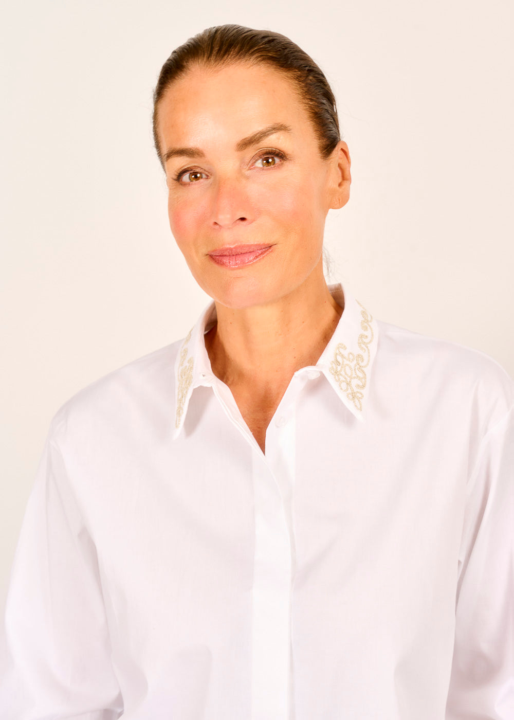 Verleihe deinem Business-Look eine romantische Note mit dieser weißen Bluse. Die feine Stickerei am Kragen setzt ein edles Detail und macht sie zum perfekten Begleiter unter Strick. Gefertigt aus einem angenehmen Material, bietet sie dir den ganzen Tag über hohen Tragekomfort und eine stilvolle Ausstrahlung.