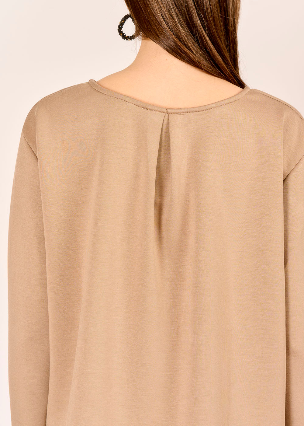 Dieses edle Shirt überzeugt mit raffiniertem Rücken und bietet eine sportliche, moderne Alternative zur klassischen Bluse. Besonders stilvoll lässt es sich mit einer edlen Pantalone für die Feiertage kombinieren – für ein bequemes Outfit, das Komfort und Eleganz mühelos vereint.
