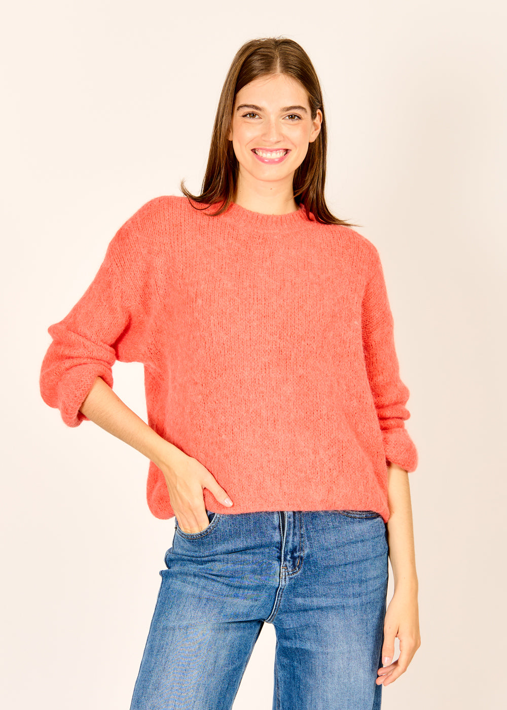 Hol dir den Wow-Effekt mit unserem modischen Pullover in der lebendigen Farbe Corallo. Die Ärmel mit ihrem subtilen Volumen – sozusagen ein Balloon-Arm – verleihen dem Pullover eine moderne und verspielte Note. Das flauschige Material sorgt nicht nur für einen stylischen Look, sondern auch für ein wunderbar weiches Tragegefühl.