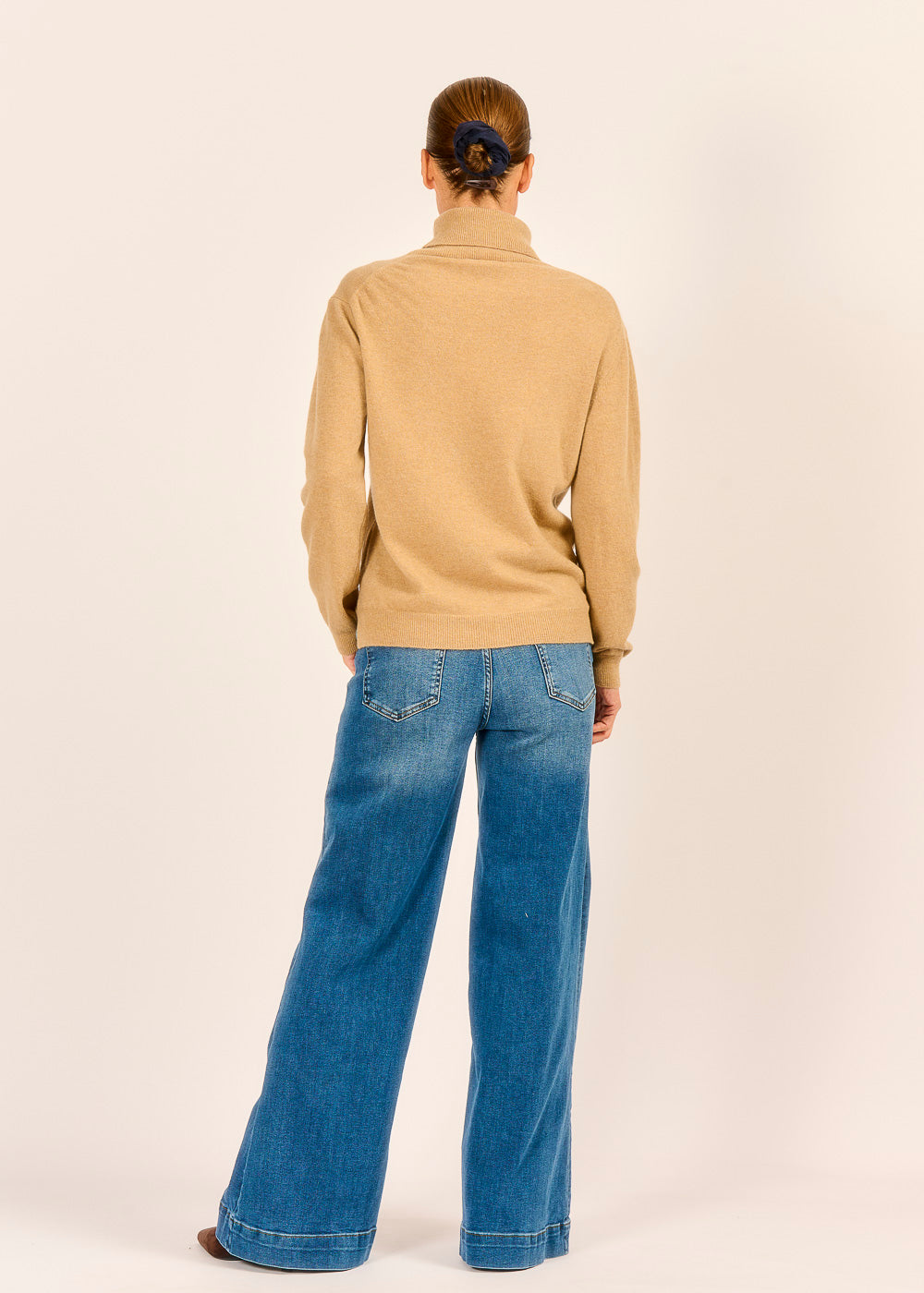 Dieser edle Rollkragenpullover in zeitlosem Beige ist ein Statement purer Eleganz, dessen feine Strickqualität sofort ein Gefühl von Luxus vermittelt. Sein klassischer Schnitt mit dem weichen Rollkragen sorgt nicht nur für wohlige Wärme, sondern rahmt auch Ihr Gesicht vorteilhaft und stilvoll ein. Kombiniert mit lässigen Jeans oder einem eleganten Rock, wird dieser Pullover schnell zum Key-Piece Ihrer Garderobe für jede Gelegenheit.