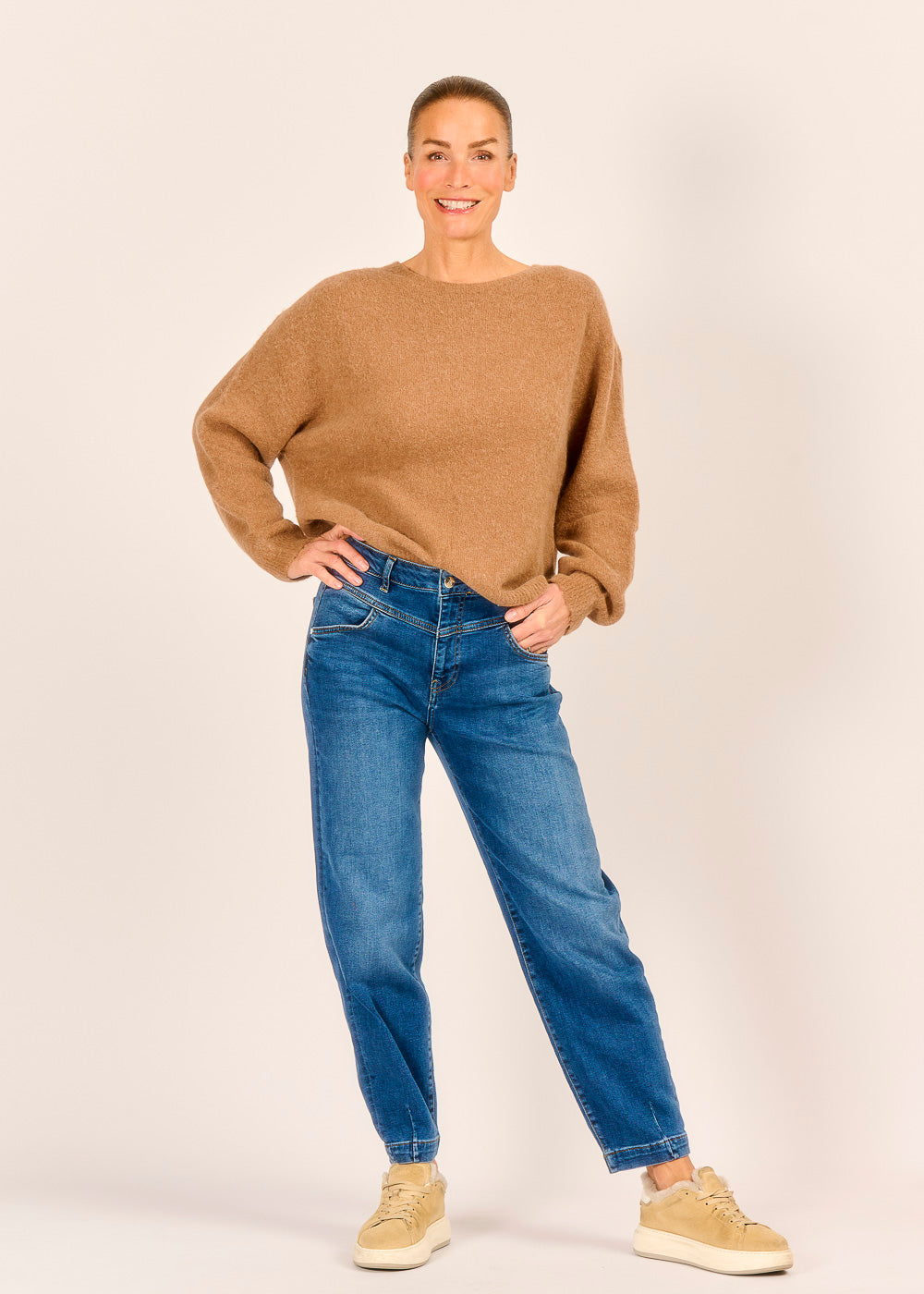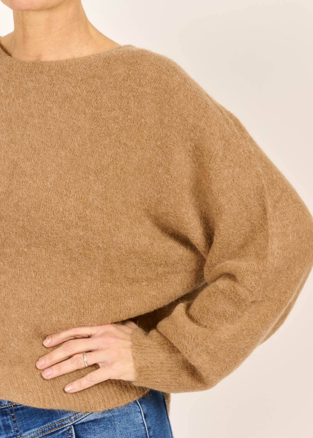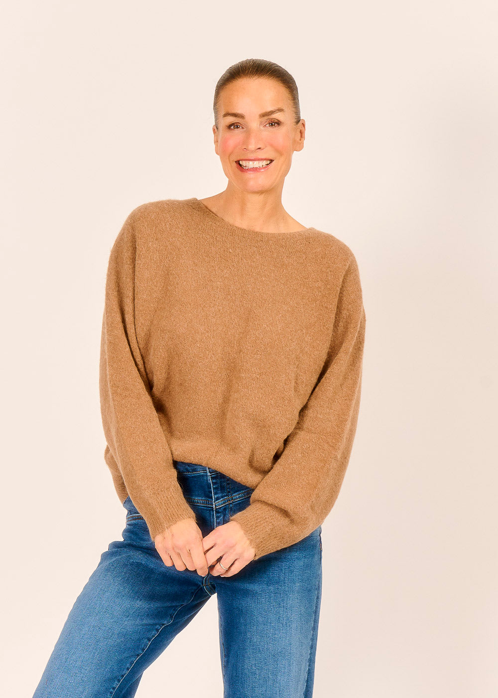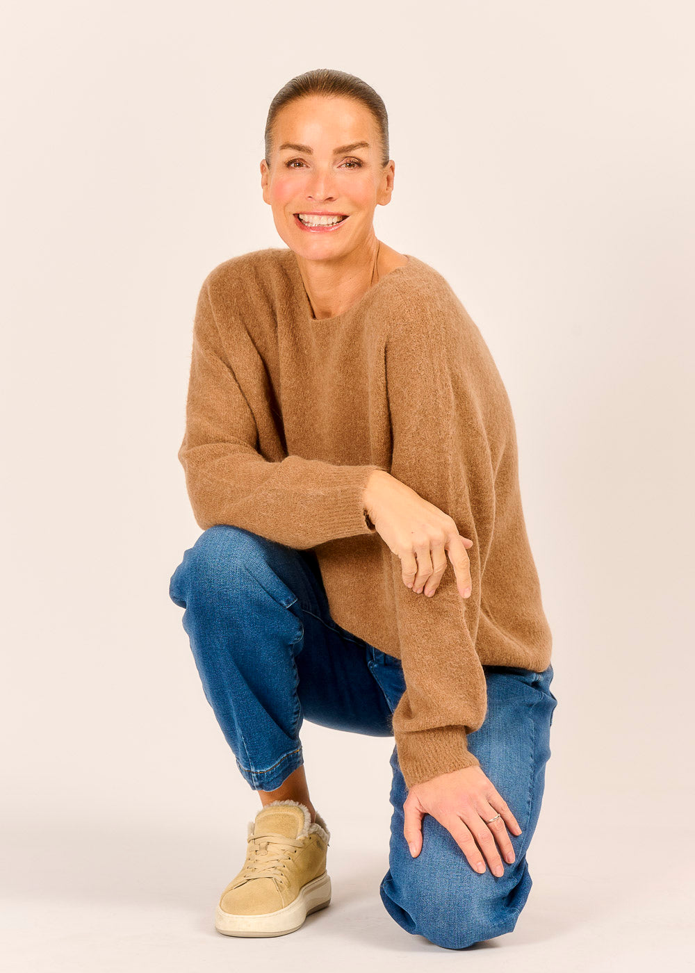 Caramello, ein warmer und reicher Braunton, verleiht dem Wohlfühlpullover eine zeitlose Eleganz und eine luxuriöse Ausstrahlung. Der lässige, weite Schnitt mit dem eleganten U-Boot-Ausschnitt hüllt Sie in eine Wolke der Behaglichkeit und sorgt für maximalen Tragekomfort. Ob casual zur Jeans oder elegant zum Rock – dieses kuschelige Key-Piece wird schnell zu Ihrem liebsten Begleiter für stilvolle Gemütlichkeit an kühlen Tagen.